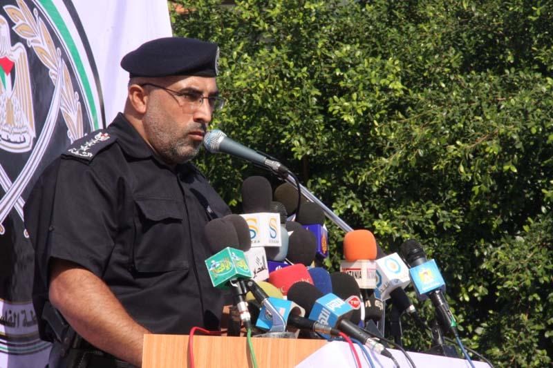Al-Jarah , Palestinian police chief , in his office in Gaza city while , the delegation included Dr. Moataz Al-Khalidi and Capt. Kamal Al-sha'er from Rafah police .