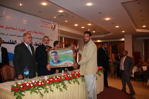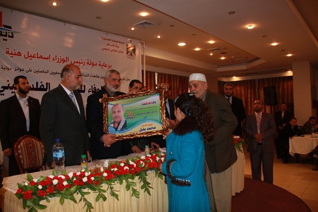 وقال هنية خلال حفل تكريم الصحفيين والإعلامين الفلسطينيين الحاصلين على جوائز دولية وتكريم ذوي شهداء الإعلام وفي الذكرى السنوية الثانية لحرب الفرقان، عصر الخميس (30/12) :"نحيى دور الإعلام الفلسطيني في معركة التحرر ضد العدو الصهيوني".