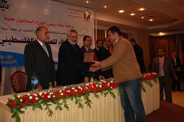 وأشاد رئيس الوزراء بكل الصحفيين الفلسطينيين الحاصلين على جوائز دولية رغم الحصار الصهيوني المفروض على قطاع غزة، مثمنا منافسة الصحفيين في غزة لكبار الإعلاميين العالميين والحصول على جوائز دولية، وقال "هذا محط فخر واعتزاز لنا جميعاً".