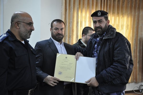 وفي نهاية اللقاء كرم كل من وزير الداخلية حماد ومسئول العمل الجماهيري بحركة المقاومة الإسلامية حماس الأستاذ أشرف زايد أعضاء اللجنة الميدانية الأمنية بشهادتين من وزارة الداخلية وحركة حماس وصورة لخارطة فلسطين على الجهد المبذول في إنجاح المهرجان.