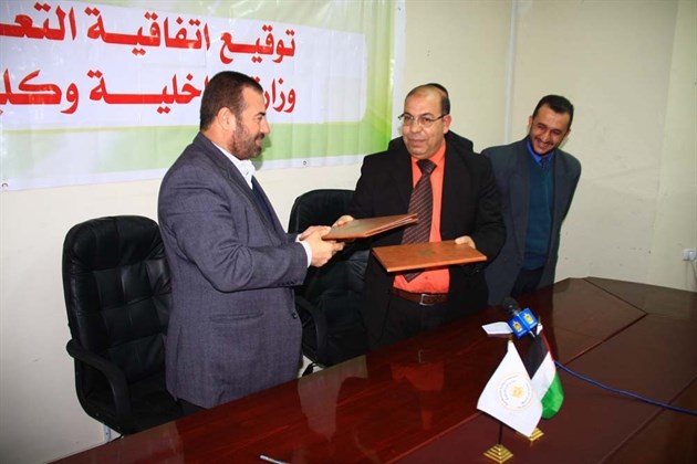 وقع وزير الداخلية والأمن الوطني الأستاذ فتحي حماد والدكتور كمال غنيم رئيس كلية الزيتونة اتفاقية تعاون بين الوزارة والكلية لتبادل المعلومات والخبرات إضافة على تأهيل وتدريب ضباط وأفراد القوى الأمنية الفلسطينية.