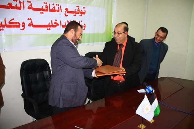 اكد العقيد محمود صلاح مدير عام المديرية العامة للتدريب بوزارة الداخلية بأن الوزارة تسعي الى الارتقاء بعملها والانفتاخ على مؤسسات المجتمع الدني الفلسطيني لتقديم خدمة مميزة لابنائها جاء ذلك في حفل توقيع اتفاقية تفاهم بين وزارة الداخلية وبين جاكعز الزيتونرحيث وقع وزير الداخلية والأمن الوطني الأستاذ فتحي حماد والدكتور كمال غنيم رئيس كلية الزيتونة اتفاقية تعاون بين الوزارة والكلية لتبادل المعلومات والخبرات إضافة على تأهيل وتدريب ضباط وأفراد القوى الأمنية الفلسطينية.