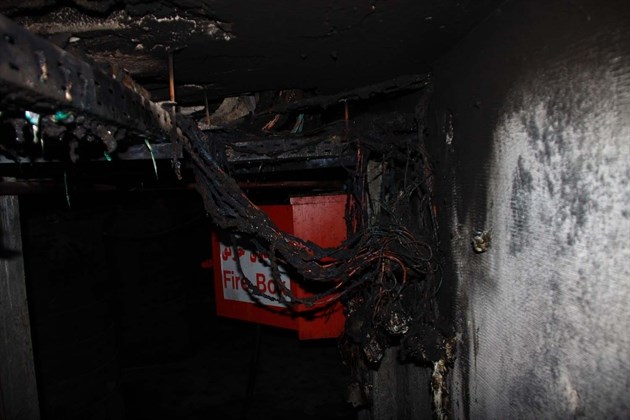 وكانت النيران اشتعلت الطابق الأرضي أمس في برج الكرامة رقم (2) والذي يضم منافع البرج من توصيلات كهربائية وأنابيب المياه والتي تضررت بشكل كبير مما أدى لانقطاع الكهرباء بشكل كامل عن سكان البرج .