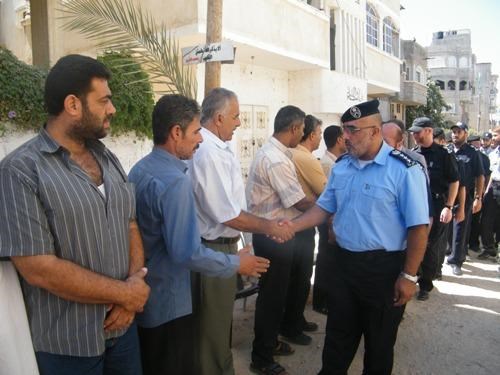 A delegation from Palestinian police leadership, led by Brigadier-General Abu Obeida Al-Jarrah and a number of departments' directors and police officers, visited the house of Al-Sha'ir family to offer condolences to the death of Haj Abu Ahmed Al-Sha'ir in Rafah, whereas, the delegation of Palestinian police leadership condoled his families.