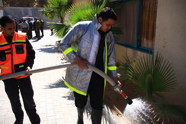 بدوره قال النقيب محمد عسلية مدير مركز الدفاع المدني في بيت لاهيا " إن دور الدفاع المدني اليوم في العمل التطوعي يتمثل في مشاركة باقي الأجهزة الأمنية من خلال سقاية الزرع والأشتال الزراعية وترطيب الأرض من خلال رشها بالماء " .