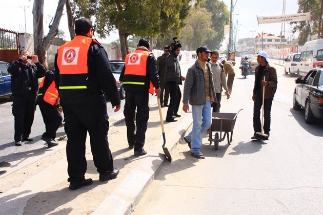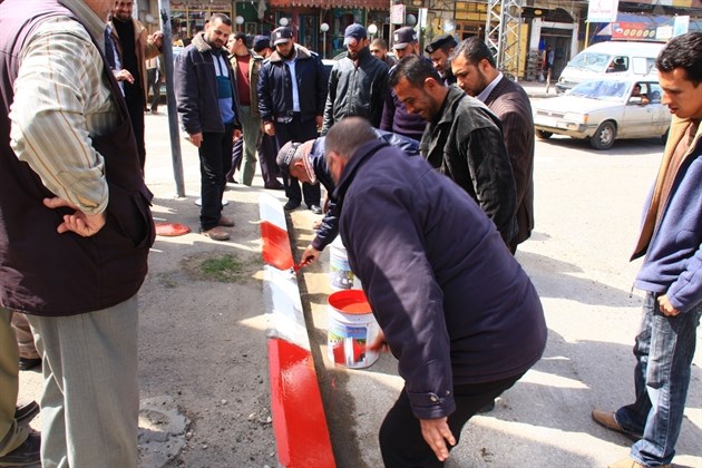 انتشر أبناء الأجهزة الأمنية وعمال مدينة بيسان الترفيه وطواقم بلدية دير البلح صباح اليوم في شارع الشهداء بمدينة دير البلح يسقون الزرع ويكنسون الشارع ويقومون بدهان لأرصفة الشارع إلى جانب دهان جذوع الأشجار في منظر نال إعجاب واستحسان المواطنين .