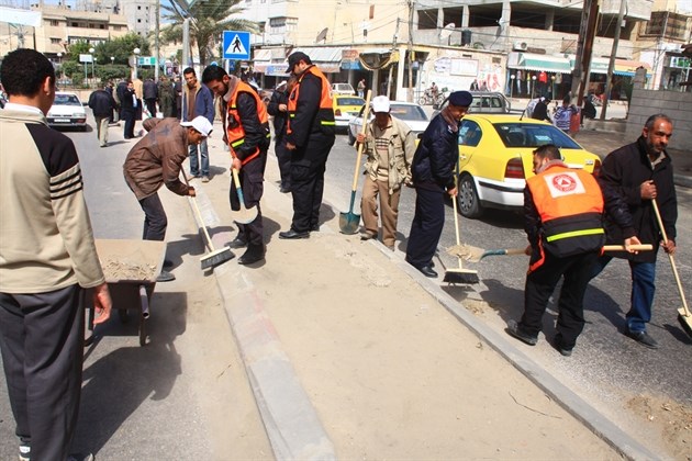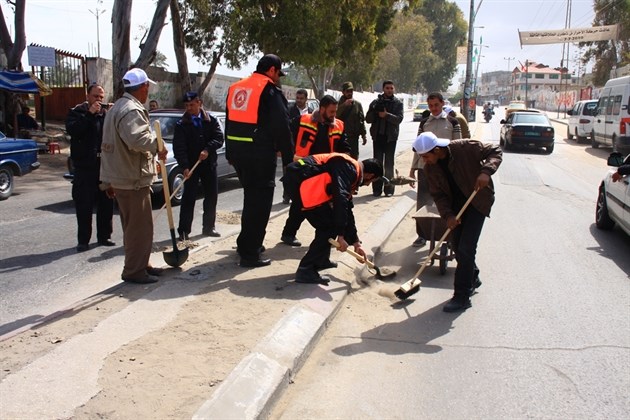انتشر أبناء الأجهزة الأمنية وعمال مدينة بيسان الترفيه وطواقم بلدية دير البلح صباح اليوم في شارع الشهداء بمدينة دير البلح يسقون الزرع ويكنسون الشارع ويقومون بدهان لأرصفة الشارع إلى جانب دهان جذوع الأشجار في منظر نال إعجاب واستحسان المواطنين .