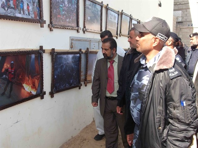 Mr. Maher Abu Zer , one of the curators of the exhibition , was welcomed the delegation of the Palestinian police, stressing that the exhibition came to embody the war on Gaza and to highlight the crimes committed by the Zionist enemy against our people in the Gaza Strip, especially Palestinian police