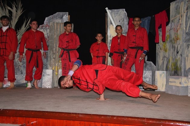 ارتسمت ملامح الفرح والسرور على وجه الطفلة نور ياسين 9 سنوات وهي تشاهد لاعب الننشاكو يقوم بحركاته بهلوانية مضحكة .