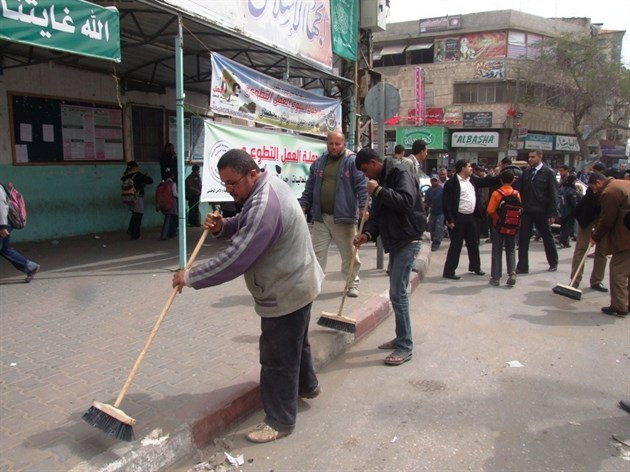 Al- Nabulsia said : " The activities of campaign included cleaning up Al-Awda square in Rafah city in the southern Gaza strip , and the paint color for sidewalks within traffic laws, as well as re-planning for pedestrianspassage in Abu Bakr street ."