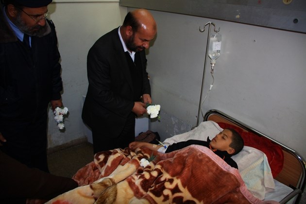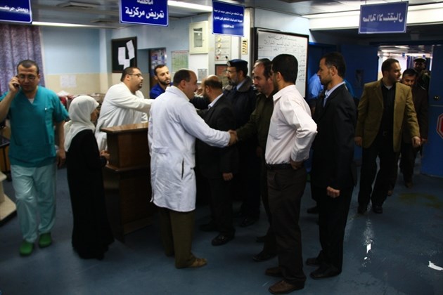 تنقل وفد الداخلية بين أقسام وغرف المستشفى ن واستمعوا لشكاوى ومطالب المرضى مطالبين أكثرهم بمنع الدراجات النارية بشكل نهائي من السير في شوارع قطاع غزة .