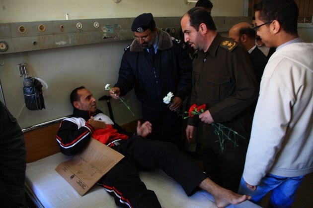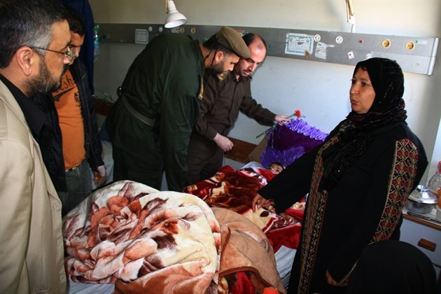 علت كلمات الترحيب من قبل المرضى في غرف وأروقة مستشفى الشفاء غرب مدينة غزة أثناء استقبالهم وفداً من قيادة وزارة الداخلية حضر للاطمئنان على صحتهم والاستماع لشكواهم .