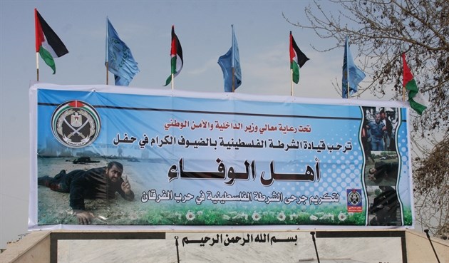 على أرض ساحة مقر الجوازات الأمني الذي روي بالدماء وعبد بالأشلاء في أول أيام العدوان الصهيوني الغاشم على قطاع غزة نهاية العام 2008، كرمت الشرطة الفلسطينية بوزارة الداخلية والأمن الوطني ثلة من جرحاها البواسل في معركة الفرقان.