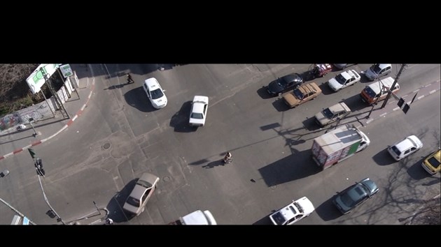 وفي مطلع الفيلم الذي لا تزيد مدته عن 3 دقائق تظهر كلمتي "الحلم المتحرك" بلونهما الذهبي الفاقع من وسط شاشة سوداء مظلمة لتنتقل بعدها مباشرة عدسة الكاميرا نحو أحد الشوارع والمفترقات الرئيسية بمدينة غزة المحاصرة.