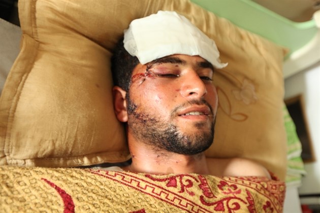 ويقول الشاب أبو صفية الذي أصيب بجراح متوسطة في رأسه وتناثر شظايا القذائف المدفعية في أنحاء جسده النحيف :"في تمام الساعة التاسعة صباحاً تم استهداف موقع الكتيبة الثانية بشكل مفاجئ دون إشارة سريعة تسبق القصف المدفعي والجوي".