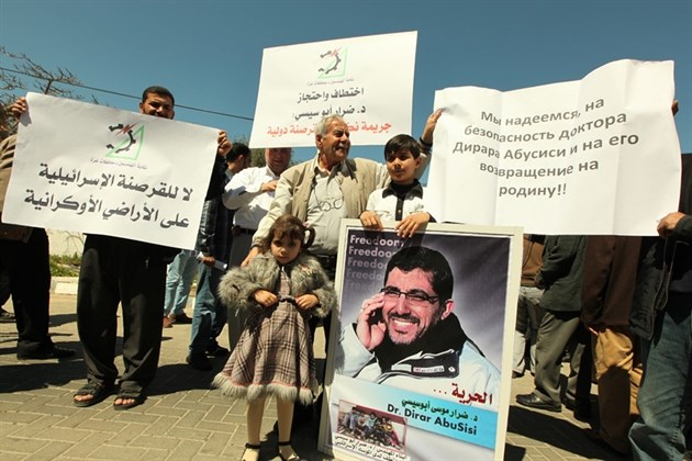 ورفع المعتصمون صوراً للمهندس الذي اختطفه جهاز الموساد الصهيوني خلال زيارة له للجمهورية الأوكرانية للحصول على الجنسية كما ناشد ذووه وأفراد أسرته هيئات حقوق الإنسان والمؤسسات الدولية كافة والضمائر الحية وأحرار العالم للعمل الفوري على كشف مصير المهندس أبو سيسي وتحريره من سجون الكيان .