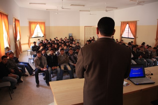 وكان في استقبال الوفد أ. ماجد ياسين مدير المدرسة ومدرسيها الذين رحبوا بالوفد ، وشكروا لهم هذه الزيارة الهامة والتي تبني جسور الثقة بين الطالب والشرطي .