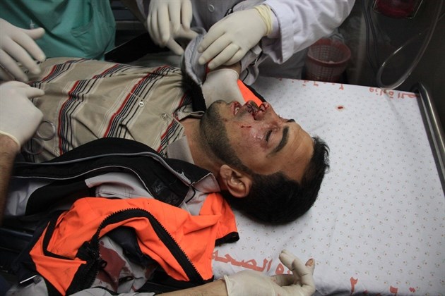 وقال أبو سلمية " إن 6 من الإصابات التي وصلت من الأطفال إلى جانب 3 حالات خطرة وإصابة احد المسعفين من الخدمات الطبية العسكرية "