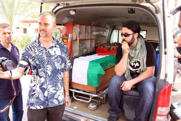 وشارك في وداع الجثمان، الذي لُف بالعلم الفلسطيني، وحمل على أكتاف أصدقائه ومحبيه، جمْع غفير من المواطنين وممثلي مؤسسات المجتمع المدني ومؤسسات حقوق الإنسان، وممثلي الفصائل الوطنية والإسلامية، وصحفيين أجانب وفلسطينيين، وبحضور خطيبته المحامية كلاوديا ميلاني وموفد من القنصلية الإيطالية.