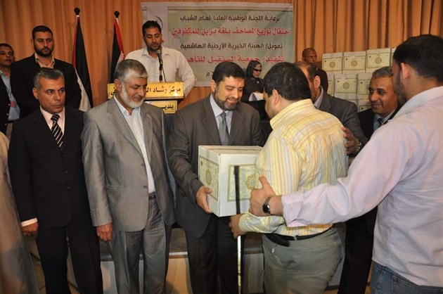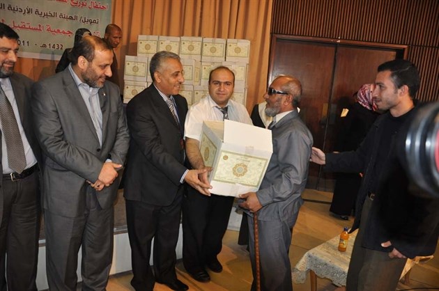 نظمت جمعية المستقبل للتأهيل حفلاً صباح اليوم لتوزيع المصحف الشريف بلغة برايل للمكفوفين بتمويل من الهيئة الأردنية الخيرية الهاشمية عن طريق المستشفى العسكري الميداني الأردني غزة/13 وبرعاية اللجنة العليا لعام الشباب.