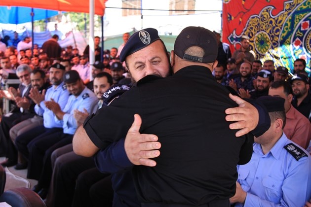 سلم قائد الشرطة الفلسطينية العميد جمال الجراح مهام إدارة جهاز الشرطة بوزارة الداخلية لنائبه العميد تيسير البطش وذلك خلال حفل تخريج دورة "وحدة الاقتحام" التابعة لقوات التدخل وحفظ النظام (الوحدة الشرطية الخاصة) بعد تلقي أفرادها تدريبات عسكرية مميزة.