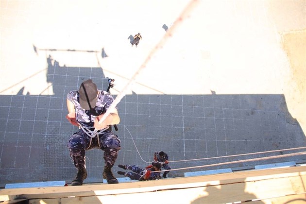 كما نظم أفراد الشرطة الخاصة عرضاً جسد اقتحام منزل يتحصن فيه مجرمون مطلوبون للعدالة حيث تمكن الشرطيون من أبناء وحدة الاقتحام الخاصة في دخول المنزل وتطهيره من المجرمين واعتقالهم لتقديمهم للعدالة.