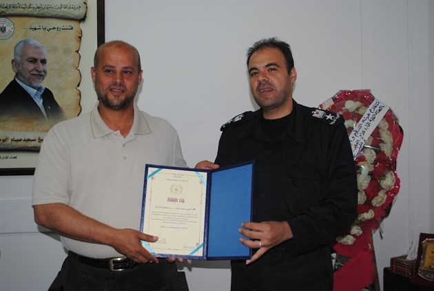 زار وفدا من المديرية العامة مدير عام القوي الأمنية في وزارة الداخلية اللواء صلاح أبو شرخ أبو يحيي وكان علي رأس الوفد العقيد محمود صلاح أبو صلاح مدير المديرية العامة للتدريب ونائبه المقدم هشام الكريري والمقدم محمود أبوحشيش نائب المدير للشؤون الإدارية والمالية والرائد عطايا ريحان والرائد عبدالله قرموط مدير العلاقات العامة والملازم أول مدير الاعلام
