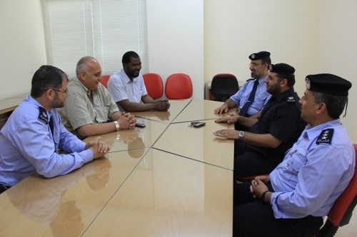 A delegation from Palestinian police visited the headquarters of International Red Cross in Gaza, that headed by lieutenant colonel Moataz Al-Khalidi, director of public relations in the police, major Ayman Al-Batneeji, director of Information Office and a number of police officers.