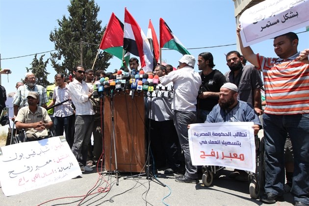 اعتصم مئات الشبان الفلسطينين والجرحى والطلبة صباح الخميس قبالة معبر رفح البري للمطالبة بفح المعبر بشكل دائم.
