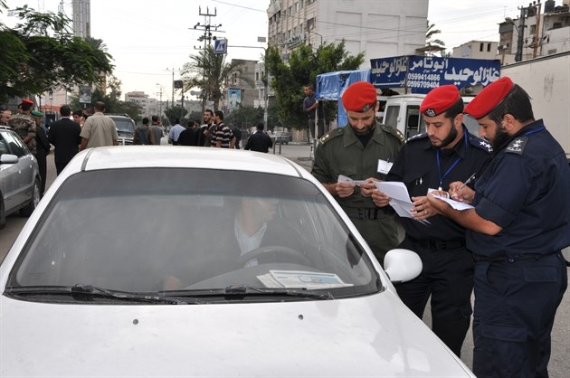 بعبارة قف .. وإشارات المرور الخاصة بتوقيف السيارات والمركبات التي تسير على الطريق بدأ عدد من عناصر الشرطة الفلسطينية وأفراد المرور وأمن الشرطة والانضباط العسكري بجهاز الأمن الوطني صباح الاثنين غرة تشرين ثان/ نوفمبر الجاري بحملة ضبط المركبات الحكومية الخاصة للعاملين في وزارة الداخلية والأمن الوطني والحكومة الفلسطينية.