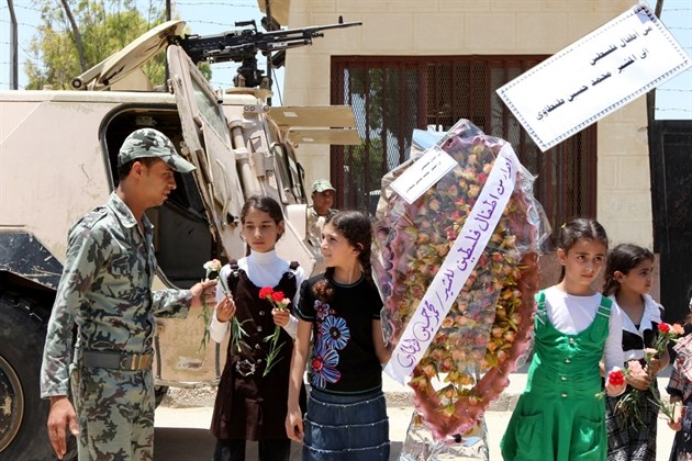 ابتسمت الطفلة آية عبد الرحمن صاحبة الثمانية أعوام في وجه أحد الجنود المصريين وهي تهديه وردة تعبيراً عن تقديرها لجهودهم وذلك خلال اعتصامها ظهر الثلاثاء أمام بوابة معبر رفح الفاصلة بين الجانبين الفلسطيني والمصري للمطالبة بفتح دائم وكامل للمعبر أمام حركة المسافرين الغزيين.