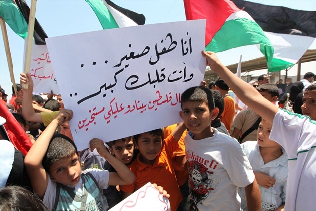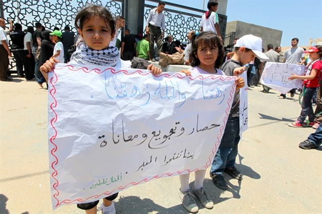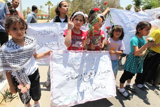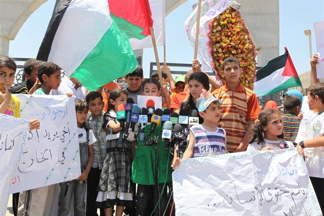 وخرج أطفال غزة من قلب معاناة القطاع المحاصر للعام الخامس على التوالي ليؤكدوا حقهم في العيش بحرية وعزة وكرامة ووقفوا أمام البوابة المصرية من معبر رفح ليطالبوا بحقهم الانساني.