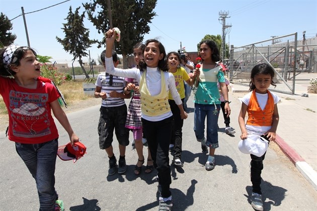 وحمل الأطفال الفلسطينيون بعض الزهور في أيديهم ليهدوها للجنود المصريون المرابطون على الجانب الآخر من المعبر تعبيراً عن حبهم لجهود القيادة المصرية في تخفيف الحصار المفروض على غزة.