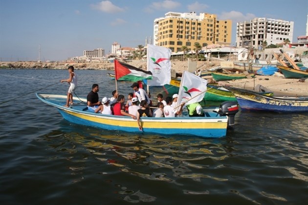 نظم الاتحاد العام للرياضة العسكرية بوزارة الداخلية رحلة بحرية للأطفال الأيتام وأبناء الأسرى المشاركين فى المخيم الكشفي الذي ينظمه الاتحاد بالتعاون مع جمعية المحبة الكشفية على شاطئ بحر غزة.