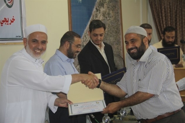 وفي نهاية الحفل تم تكريم الخريجين، والأساتذة والمشرفين، والداعمين للحفل، وتم توزيع الشهادات عليهم مع مصحف هدية، وكان من بين المكرمين الأخت زينب أبو نصيرة من الشرطة النسائية التي حازت على المرتبة الأولى في حفظ "سورة النور"، وكانت جائزتها عبارة عن 50 دولارًا إلى جانب الشهادة والمصحف.