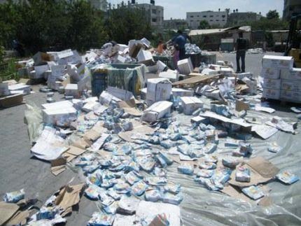 La police deravitaillement avait déclaré qu'elle a endommagé 2tonnes dejus pourri en coordination avec le municipalité de Khan Younis et le ministère de l'économie et le département de consommation et le comité de sécurité alimentaire .