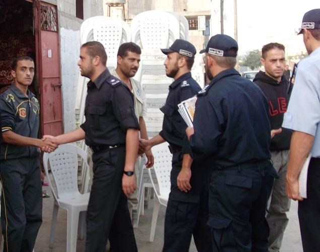 The delegation headed by Col. A'ed Hamada p,Gaza's police chief, Major Sami Abdel-Latif, a police inspector investigating in the province of Gaza and the Maj. Kazem Lzimaila , the official of inspection and follow-up and a number of officers from the governorate of Gaza .