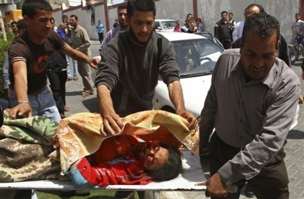 She embraced him while he was bleeding .. She was looking at him from her window to farewell him tearfully as any Palestinian mother after the bombing of occupation aircraft to the hero martyr "Raafat Abu Eada" from the town of Qarara in the southern Gaza Strip. "