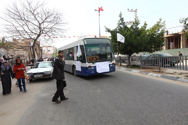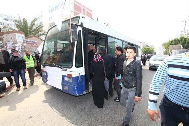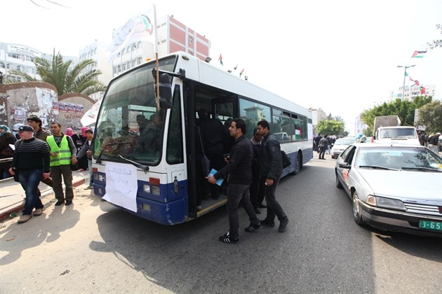 تعمل سيارات الشرطة الفلسطينية وباصات وزارة الداخلية منذ صدور قرار من مجلس الوزراء الفلسطيني بنقل المواطنين في قطاع غزة بالمركبات الحكومية على المصطافين على جوانب الطرقات ..