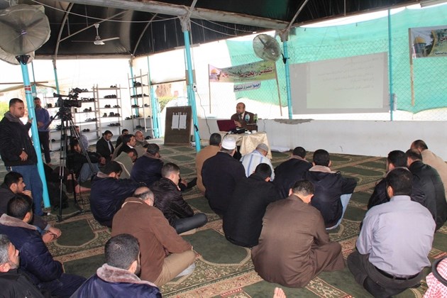 واستعرض الدكتور محمد الكحلوت في محاضرته ما تتعرض له مدينة القدس من تهويد واستيطان وانتهاكات صهيونية يومية .