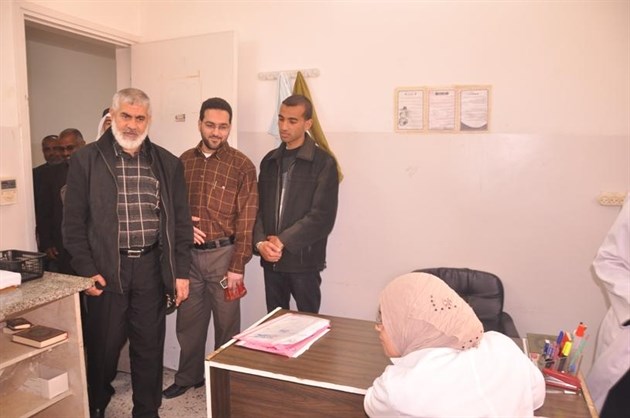 وكان في استقبال الوفد مدير عام الخدمات الطبية العقيد عاطف الكحلوت، ونائبه الدكتور المقدم فؤاد نجم، والدكتور محمد عوض، ومدير مكتبه الأخ عدلي ضاهر، ومدير العلاقات العامة محمد جبر.