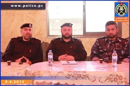 Director General of the Palestinian police Maj. Tayseer Al-Batch and his assistant, Col. Mohammed Khalaf and the director of Gaza police chief Lieutenant Colonel Jamal El-Deeb with the directors of the centers and departments in the province of Gaza.