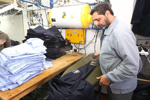 وتابع الرائد الضابوس "التداخلات اليومية في عمل المصنع لا تؤثر على المنتوج السنوي أو الشهري العام لدينا"، كاشفاً عن إنتاجهم 32 قطعة من الملابس على مدار العام الواحد "بحيث تسلم مرتين لعناصر ومنتسبي الأمن في وزارة الداخلية خلال السنة الواحدة".