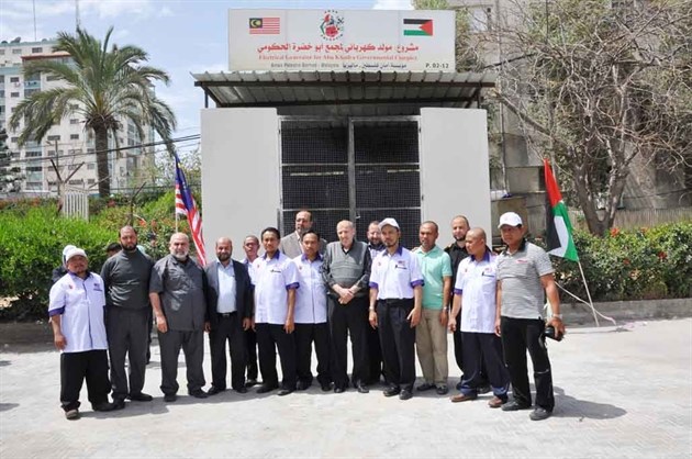 كما حضر حفل قص شريط مشروع المولد الكهربائي وفد ماليزي ضم 21 متضامناً وعدد من العاملين في مؤسسة أمان فلسطين – ماليزيا في غزة.