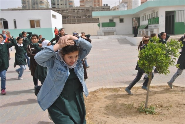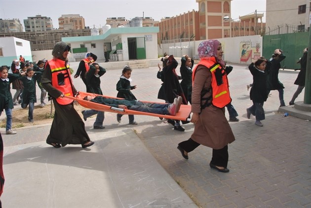 نظمت وزارة التربية والتعليم العالي بالتعاون مع جهاز الدفاع المدني اليوم مناورة إخلاء آمن لطلبة مدرسة أم القرى الأساسية المشتركة لحمايتهم من الاعتداءات الصهيونية المتكررة على قطاع غزة.