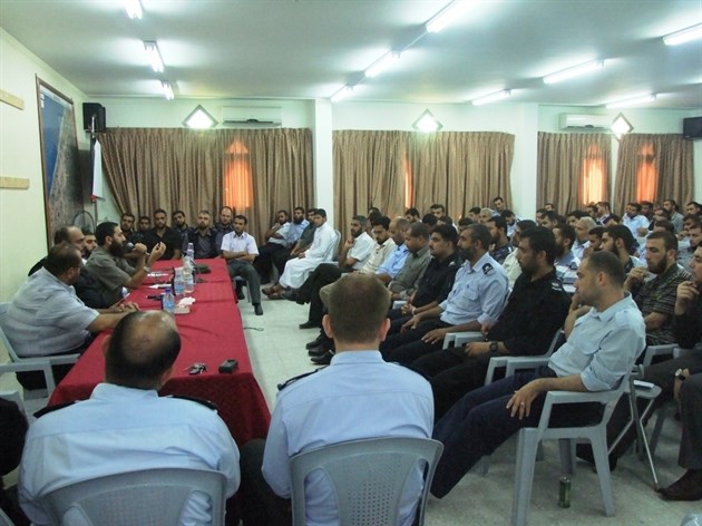 نظمت هيئة التوجيه السياسي والمعنوي بمحافظة خان يونس جنوب قطاع غزة لقاءً تربويًا بعنوان "الشرطي القدوة في وقت المحنة" لعشرات الضباط والأفراد من جهاز الشرطة بالمحافظة.