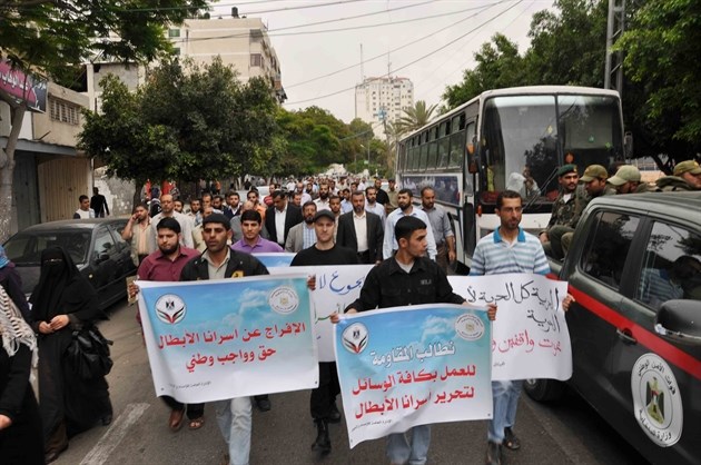 انطلقت يوم امس الاثنين مسيرة ضمت موظفي و جميع منتسبي الإدارة العامة للإمداد و التجهيز بوزارة الداخلية و الامن الوطني من أمام مجمع أبو خضرة الحكومي وذلك مساندة و دعما لقضايا الأسرى المضربين عن الطعام في سجون الإحتلال الإسرائيلية و كان على رأس المسيرة العميد محمود شاهين مدير عام الإدارة العامة للإمداد و التجهيز و مدراء الدوائر و توجهت المسيرة نحو خيمة إعتصام المتضامنين المضربين عن الطعام في ساحة الجندي المجهول في غزة و هتف المتضامنين في المسيرة مطالبين بتحقيق مطالب جميع الأسرى في سجون الاحتلال الإسرائيلي و منحهم حريتهم المسلوبة من قبل السجان الظالم و طالب المشاركين في المسيرة الحقوقين و السياسيين السعي اتجاه تحقيق مطالب الأسرى و كما أكد العميد محمود شاهين على دعم و مساندة الإدارة العامة للإمداد والتجهيز بوزارة الداخلية و الامن الوطني كل أسير في سجون الاحتلال في تحقيق مطالبهم حيث قامت الإمداد و التجهيز بتجهيز خيمة الإعتصام بالعديد من الأسرة و توابعها من الأغطية و غيرها من المستلزمات الضرورية و طالب العميد محمود شاهين أحرار العالم اجمع بالعمل على العمل على تحرير الأسرى و تحقيق مطالبهم في الحرية و الكرامة