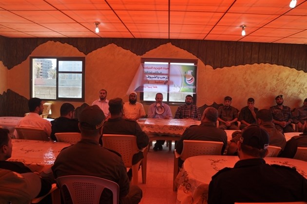 نظمت هيئة التوجيه السياسي والمعنوي بمحافظة غزة محاضرة سياسية لـ300 ضباط وعنصر من الأجهزة الأمنية باستراحة الشرطة الفلسطينية حول النكبة الفلسطينية.