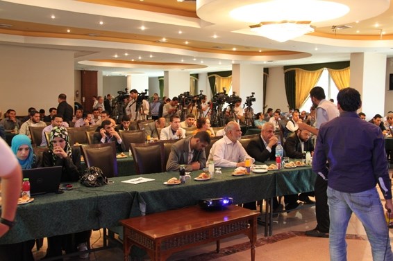 وفي كلمة الدكتور حسن أبو حشيش رئيس المكتب الإعلامي الحكومي جدد ترحيبه بممثلي وسائل الإعلام "الذين يثبتون دوما إنهم يقفون مع القضايا الرئيسية للشعب الفلسطيني", مؤكدا حرص المكتب الإعلامي الحكومي على تبني قضايا الحريات والعمل الإعلامي في فلسطين.