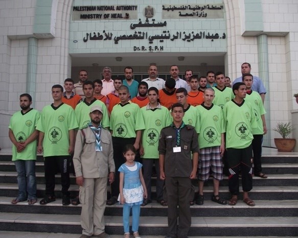 زار وفد من الاتحاد العام للرياضة العسكرية ومديرية التأهيل والإصلاح بوزارة الداخلية مستشفي الدكتور عبد العزيز الرنتيسي التخصصي للأطفال تقدمه رئيس الاتحاد نبيل حمتو ونائبه سعدي سرور ومدير سجن غزة المركزي المقدم علاء سرور بصحبة عدد من نزلاء سجن غزة المركزي المشاركين في المخيم الكشفي بعنوان "إشراقة أمل" لمقر مستشفي الرنتيسي بمدينة غزة.